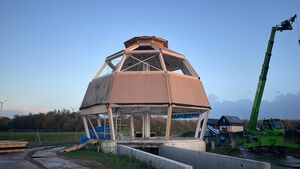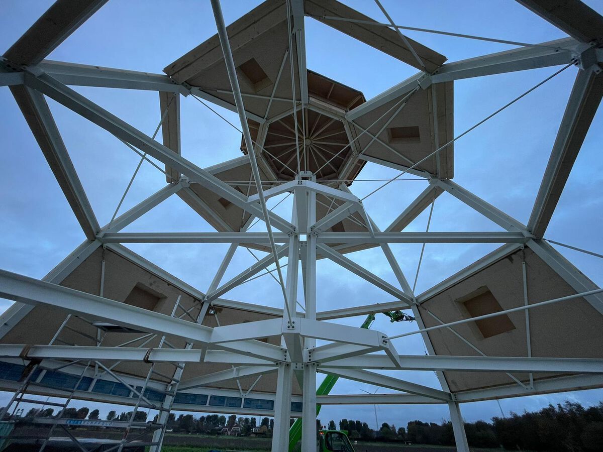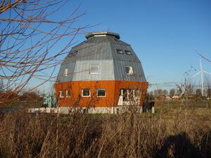 In Almere Oosterwold vind je vele bijzonder woningen maar deze zijn we bijzonder trots op. Het is een achthoek en een bol tegelijkertijd. Met zijn 14 meter hoogte een echte eye catcher.
