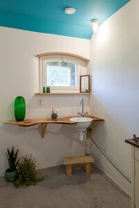 Let op het verschil in afwerking tussen de twee woningen. De ene woning is voorzien van een basislaag leem en krijgt daarmee een zeer natuurlijke uitstraling. De andere woning is ook voorzien van leem maar is ook geverfd met leemverf. Dit geeft een hele andere uitstraling.